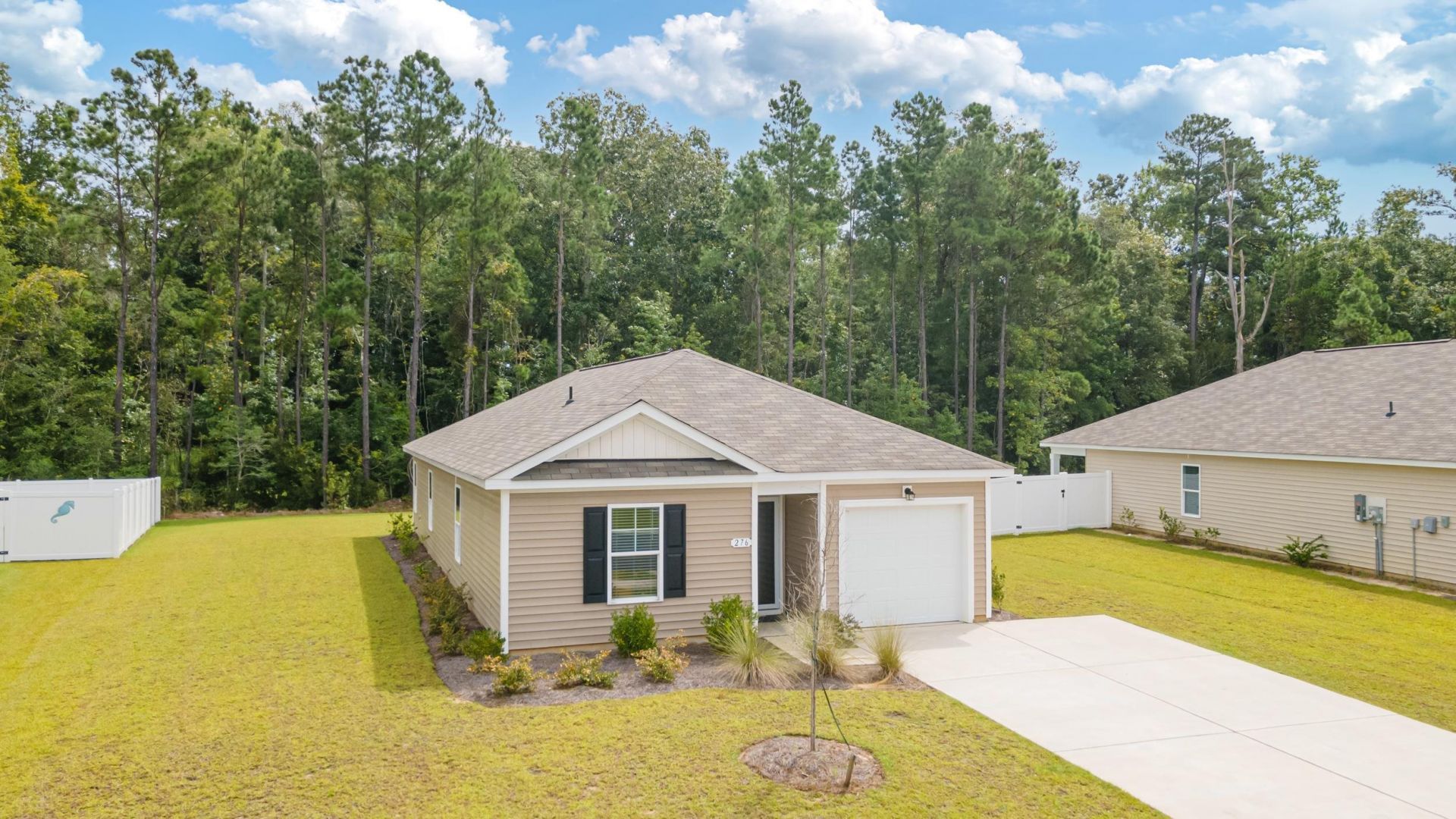 Welcome to 276 Country Grove Way in the Jordanville neighborhood of Aynor, SC. This 4 bedroom, 2 bathroom home built in 2024 offers approximately 1,480 heated square feet on a .26 acre lot and provides a great opportunity to own a home in a growing neighborhood where the builder is still actively constructing homes. Inside, the home features an open floor plan with split bedroom layout, creating a comfortable flow for both everyday living and entertaining. The kitchen is equipped with granite countertops, stainless steel appliances, cabinet hardware, a breakfast bar with seating for four, and a dining area. Just off the kitchen is a convenient laundry room. The main living areas feature laminate wood flooring, while the bedrooms offer carpet. The primary bedroom includes a walk-in closet, and ceiling fans and light fixtures are already installed throughout the home. One of the standout advantages of this property compared to many new construction homes is that several items will convey with the sale, including blinds, refrigerator, stove, microwave, dishwasher, couch, living room table, two accent tables, dining table with six chairs, and a security system with cameras, making this home truly move-in ready. Exterior features include a covered front porch and back patio, with a tree lined backyard that offers privacy and space for a future 6 foot vinyl fence if desired. The property also includes a one-car garage and a double driveway with room for up to four additional vehicles. Residents of the Jordanville neighborhood enjoy amenities such as a community pool with sun ledge, clubhouse with gym, sidewalks throughout the neighborhood, and streetlights. Located just minutes from downtown Aynor with local shops, restaurants, places to worship, parks, and pharmacies, this home is also approximately 20 minutes from historic downtown Conway and the Riverwalk and about 40 minutes from the Myrtle Beach coastline. The property is located within the Aynor school district. If youre looking for a move-in ready home in Aynor with community amenities and easy access to Conway and Myrtle Beach, this home is worth a look.